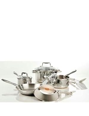 Reviews for T-Fal Performance Stainless Steel Copper Bottom Cookware, 10 Piece Set (Kitchen) It's a pleasure to cook with these pans. They are beautiful! I have not had any issues with food sticking or difficulty smoothing up. They heat quick and evenly. Be certain to found use of a decrease temperature than you would along non-stick pans. They really feel very sturdy.